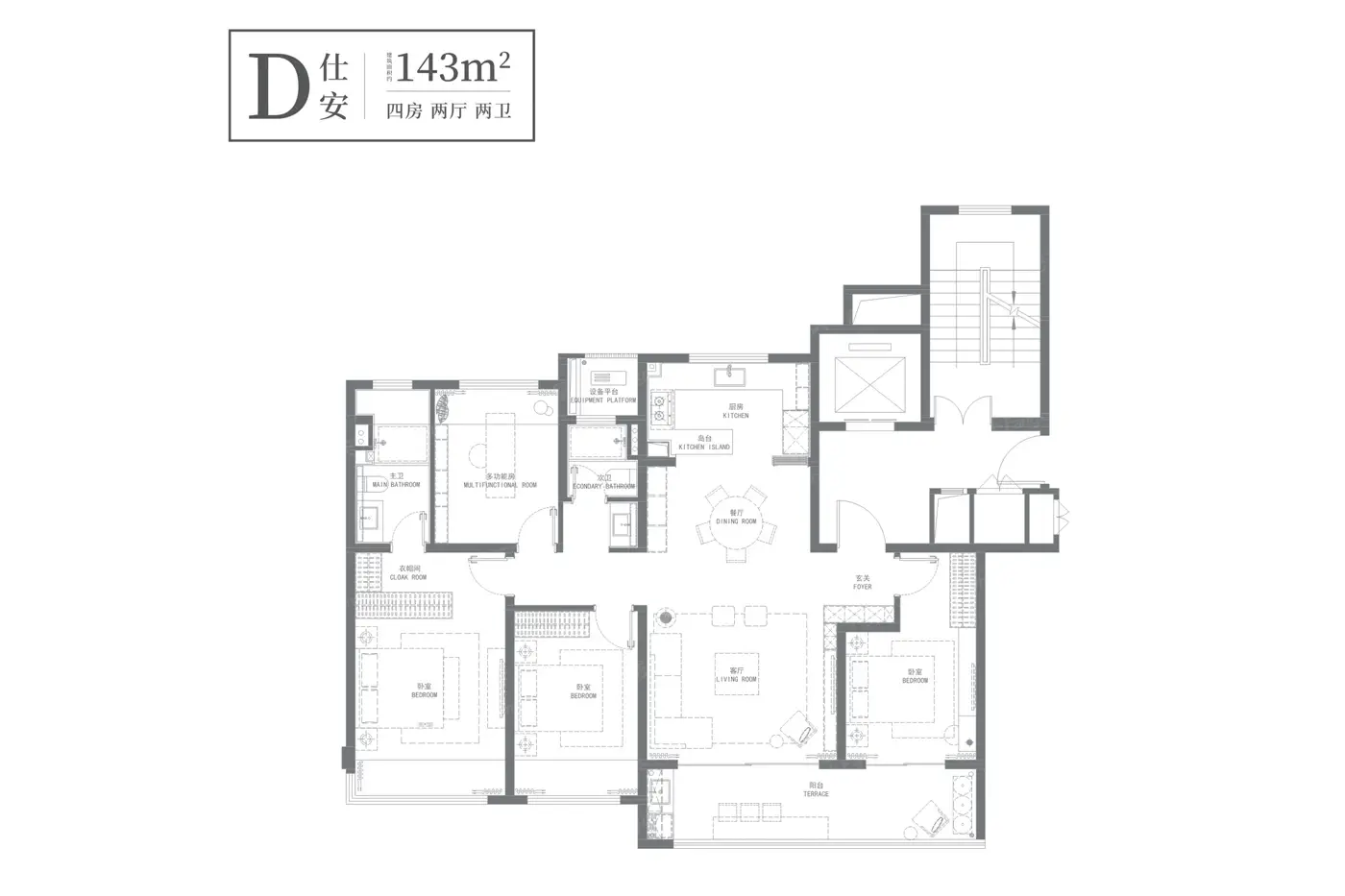 4室2厅2卫万科·国宾道 平层户型·建面/143㎡
