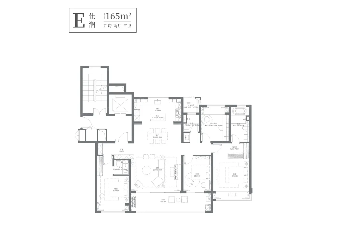 4室2厅3卫万科·国宾道 平层户型·建面/165㎡