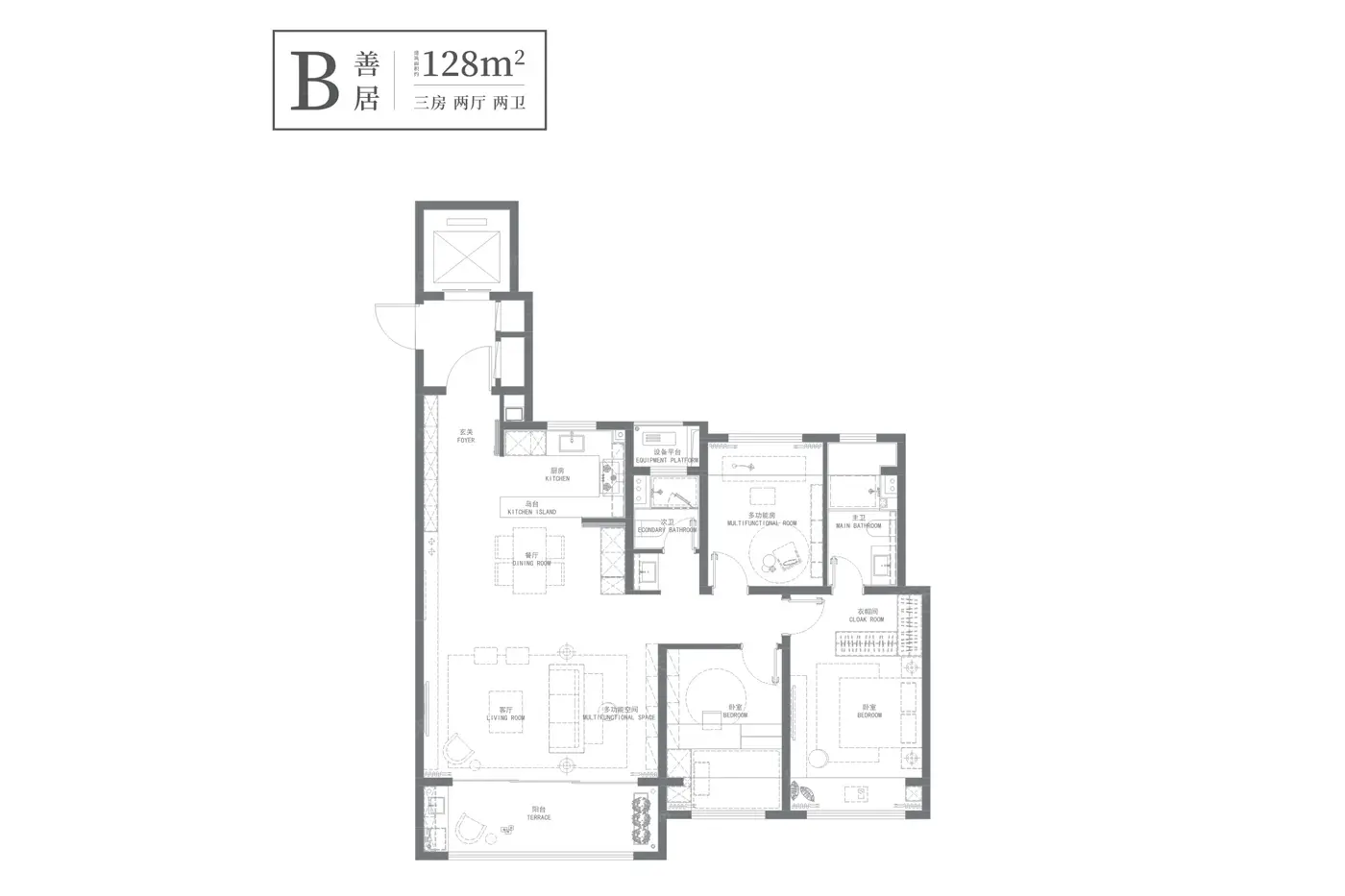 3室2厅2卫万科·国宾道 平层户型·建面/128㎡
