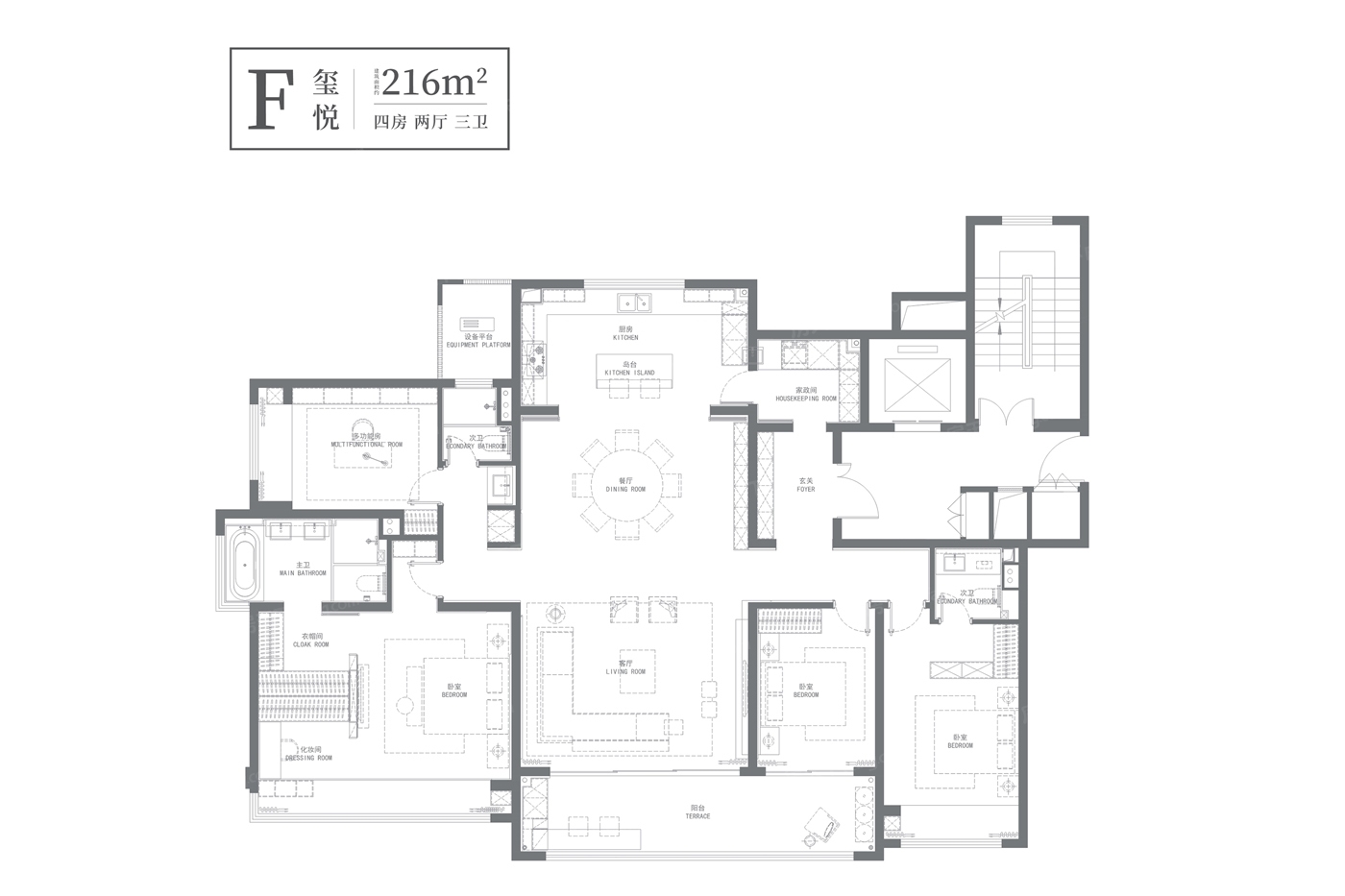 4室2厅3卫万科·国宾道 平层户型·建面/216㎡